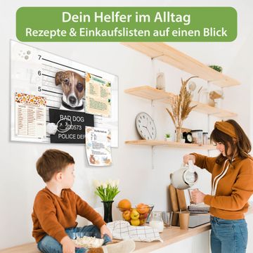 Auf der glatten Glasoberfläche lassen sich Termine, Rezepte oder Notizen ganz einfach mit Kreidestiften festhalten und rückstandslos entfernen. Starke Neodym-Magnete halten Ihre wichtigsten Erinnerungen sicher an Ort und Stelle. So entsteht Ihre ganz persönliche Ideenwand - jeden Tag neu.