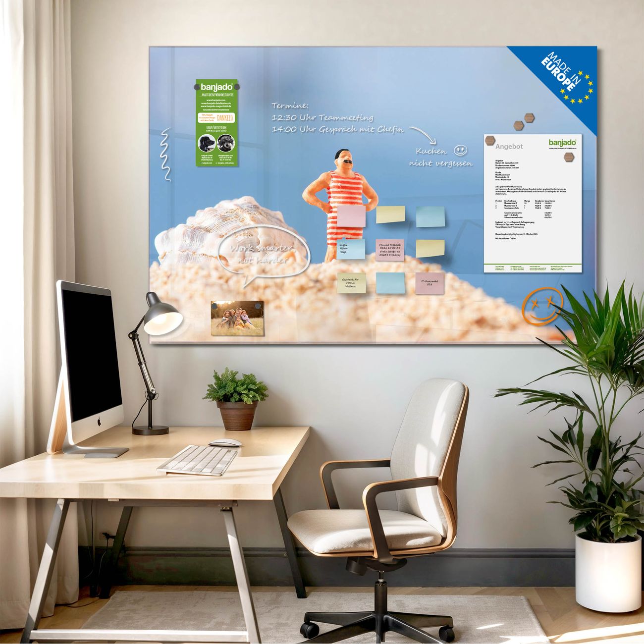 Jede Glas Magnettafel wird in unserer Werkstatt von Hand gefertigt und sorgfältig geprüft. So erhalten Sie ein echtes Qualitätsprodukt, das Funktion und Ästhetik perfekt vereint.?? Warum banjado?
