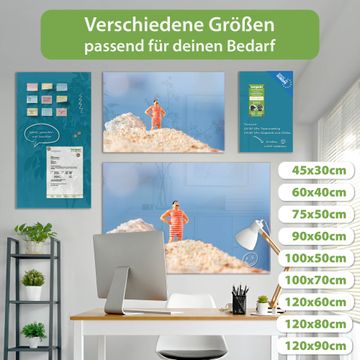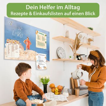 Auf der glatten Glasoberfläche lassen sich Termine, Rezepte oder Notizen ganz einfach mit Kreidestiften festhalten und rückstandslos entfernen. Starke Neodym-Magnete halten Ihre wichtigsten Erinnerungen sicher an Ort und Stelle. So entsteht Ihre ganz persönliche Ideenwand - jeden Tag neu.