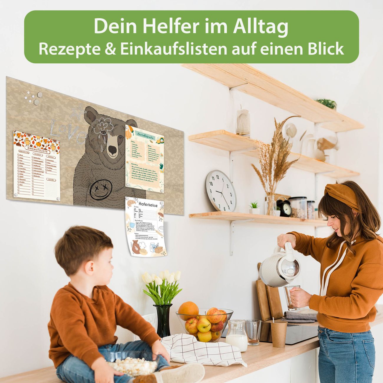 Die banjado Glas Magnettafel mit dem Motiv Motiv Bär Ohne Brille verbindet Funktionalität mit Stil. Sie ersetzt das Zettelchaos durch klare Strukturen und bringt dabei eine warme, natürliche Atmosphäre in Ihr Zuhause. Ob im Büro, in der Küche oder im Eingangsbereich - dieses Design-Board zieht Blicke an und sorgt für Ordnung mit Charakter.