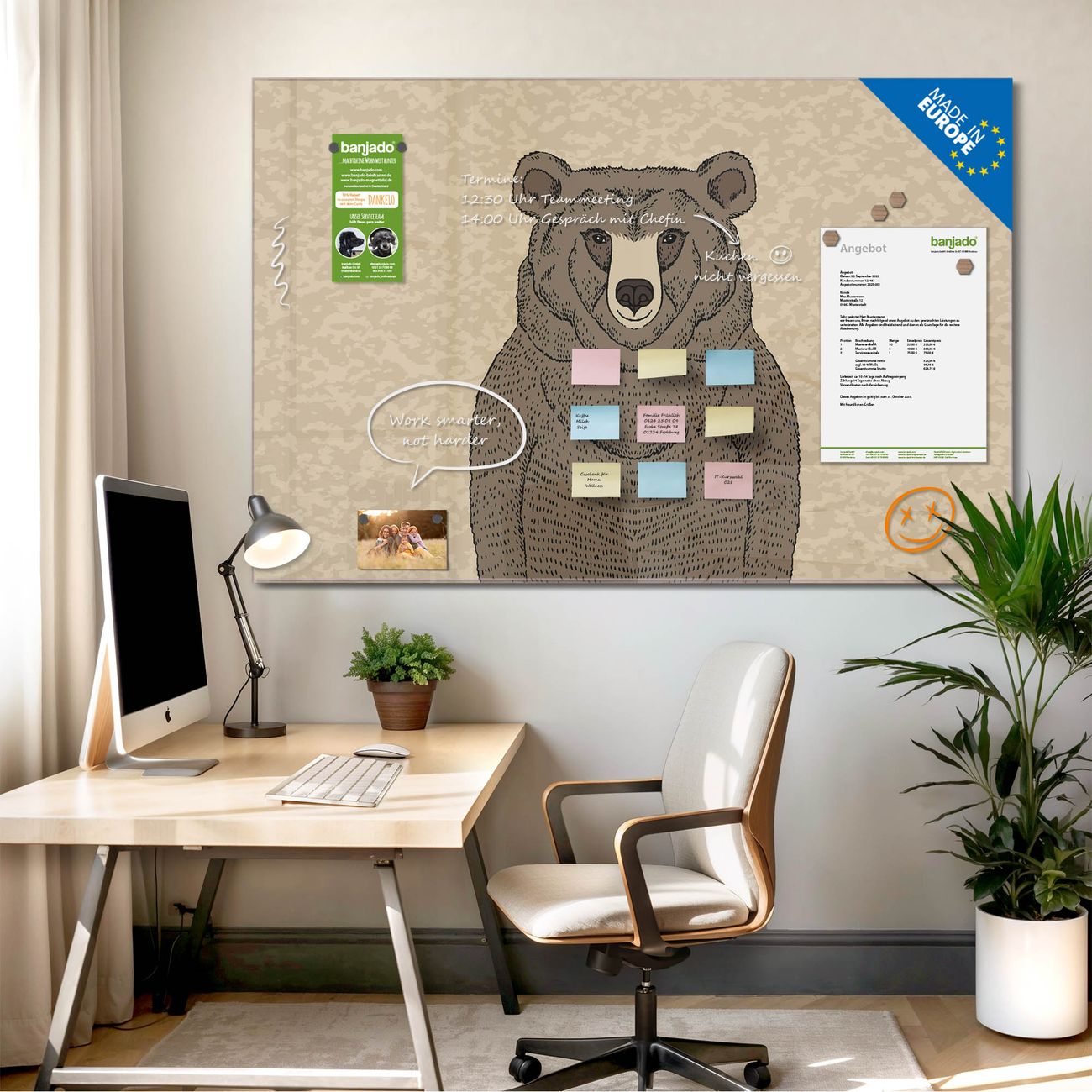 Glas Magnettafel im Querformat Motiv Bär Ohne Brille
