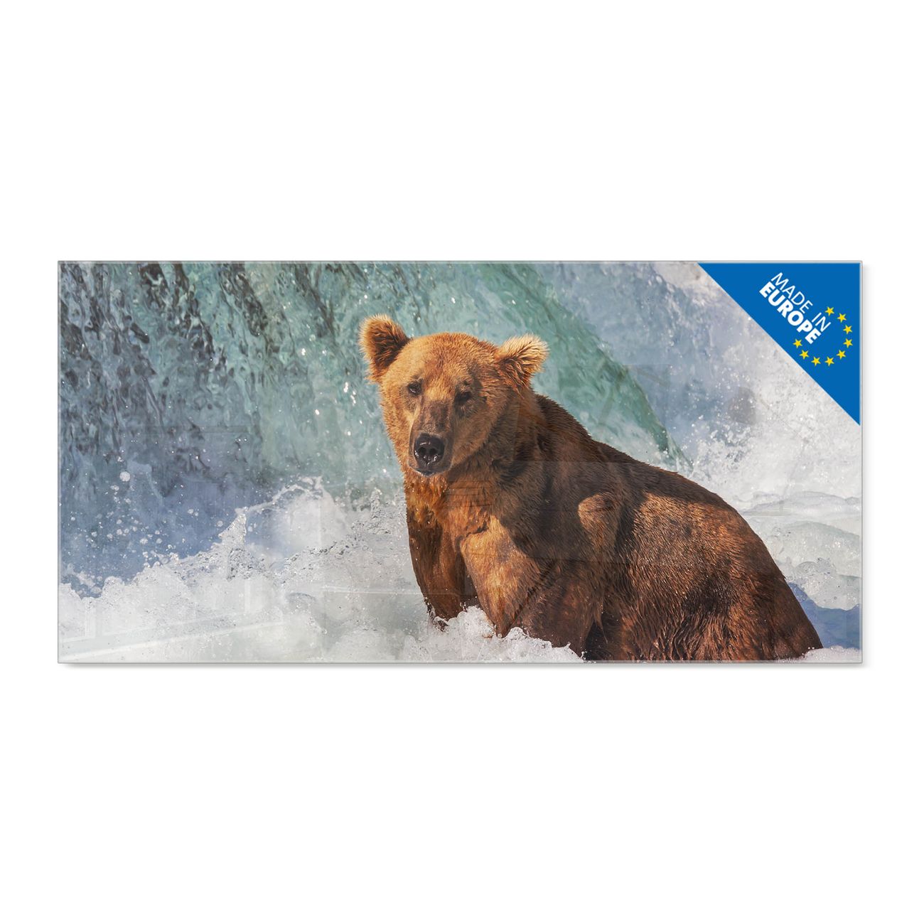 Glas Magnettafel im Querformat Motiv Bär Im Wasser