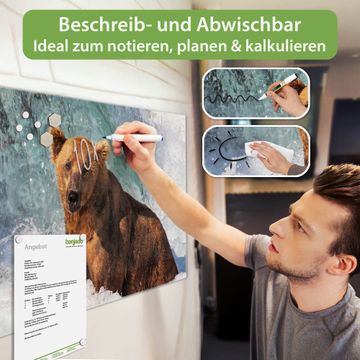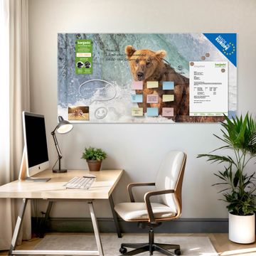 Die banjado Glas Magnettafel mit dem Motiv Motiv Bär Im Wasser verbindet Funktionalität mit Stil. Sie ersetzt das Zettelchaos durch klare Strukturen und bringt dabei eine warme, natürliche Atmosphäre in Ihr Zuhause. Ob im Büro, in der Küche oder im Eingangsbereich - dieses Design-Board zieht Blicke an und sorgt für Ordnung mit Charakter.