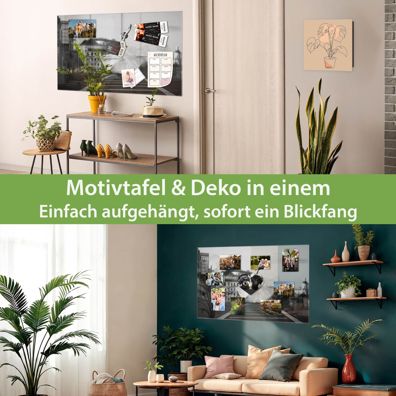Dank der flachen Bauweise wirkt die Magnetwand fast schwebend an der Wand. Sie können sie mit Montagekleber elegant befestigen oder mit einem passenden Set klassisch verschrauben - beides sorgt für sicheren Halt und eine dezente Optik.