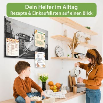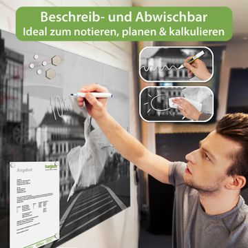 Auf der glatten Glasoberfläche lassen sich Termine, Rezepte oder Notizen ganz einfach mit Kreidestiften festhalten und rückstandslos entfernen. Starke Neodym-Magnete halten Ihre wichtigsten Erinnerungen sicher an Ort und Stelle. So entsteht Ihre ganz persönliche Ideenwand - jeden Tag neu.