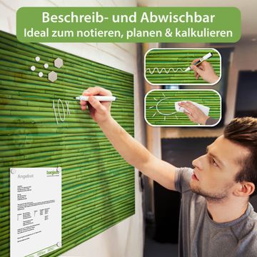 Die banjado Glas Magnettafel mit dem Motiv Motiv Bambus Grün verbindet Funktionalität mit Stil. Sie ersetzt das Zettelchaos durch klare Strukturen und bringt dabei eine warme, natürliche Atmosphäre in Ihr Zuhause. Ob im Büro, in der Küche oder im Eingangsbereich - dieses Design-Board zieht Blicke an und sorgt für Ordnung mit Charakter.