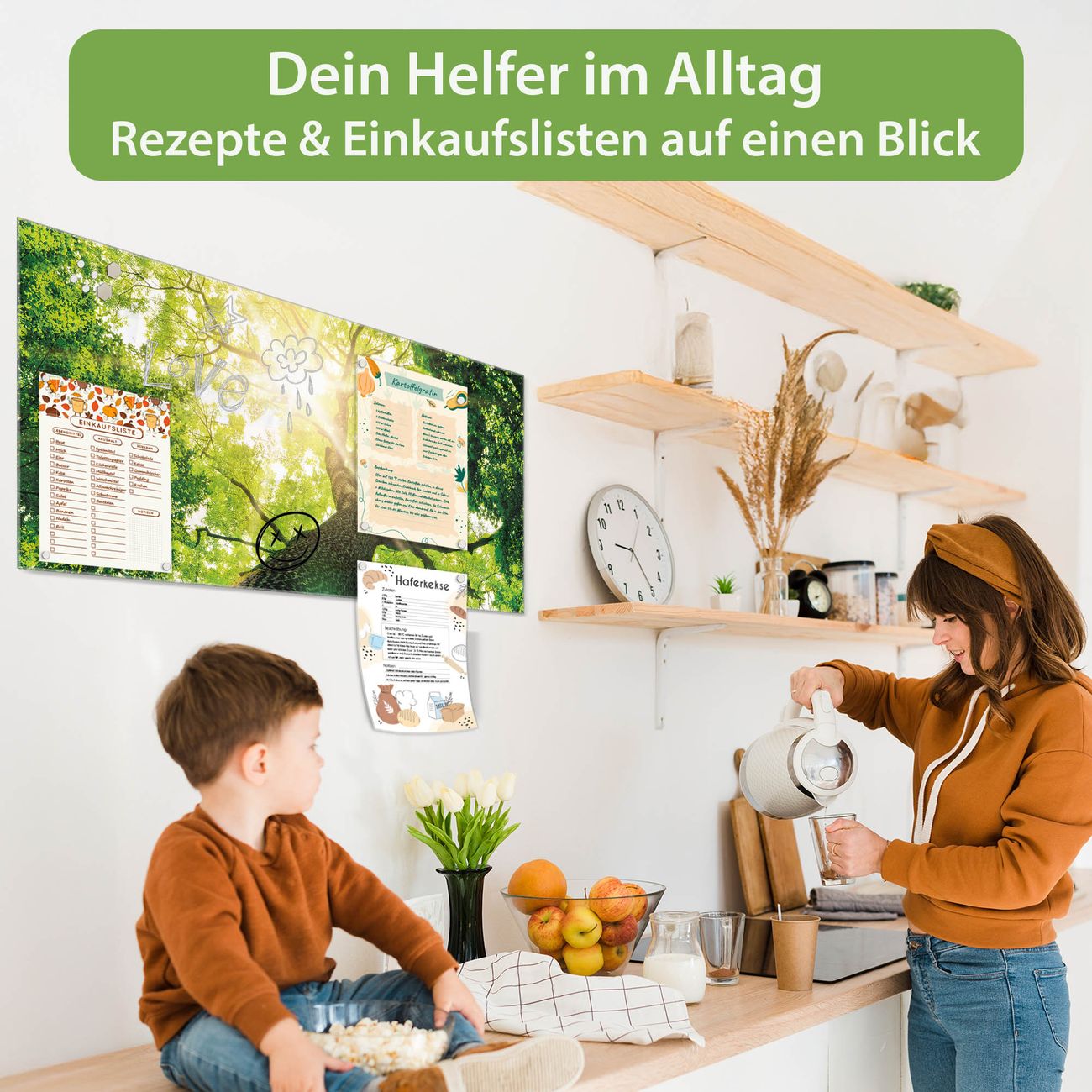Auf der glatten Glasoberfläche lassen sich Termine, Rezepte oder Notizen ganz einfach mit Kreidestiften festhalten und rückstandslos entfernen. Starke Neodym-Magnete halten Ihre wichtigsten Erinnerungen sicher an Ort und Stelle. So entsteht Ihre ganz persönliche Ideenwand - jeden Tag neu.