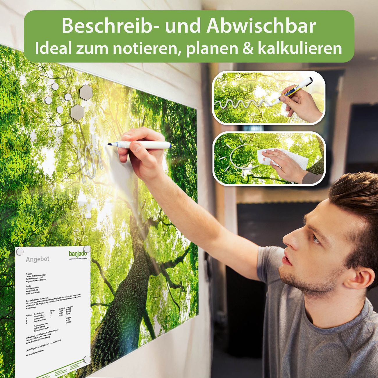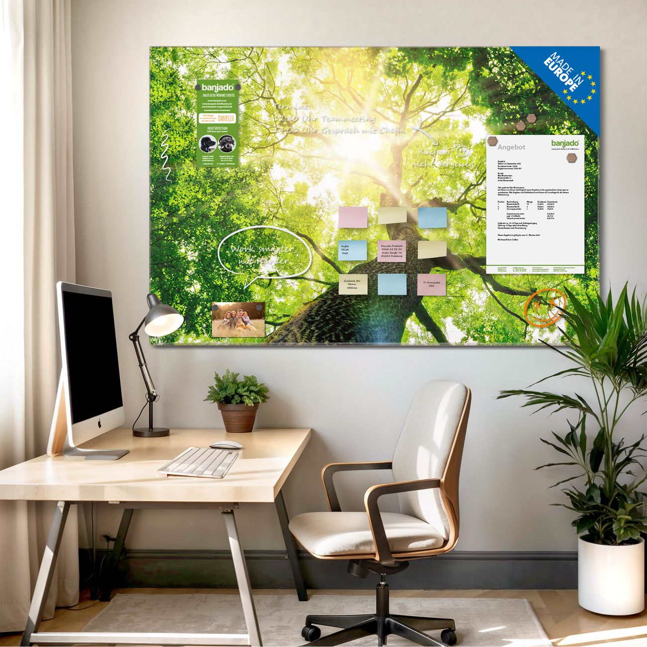 Die banjado Glas Magnettafel mit dem Motiv Motiv Baumkrone verbindet Funktionalität mit Stil. Sie ersetzt das Zettelchaos durch klare Strukturen und bringt dabei eine warme, natürliche Atmosphäre in Ihr Zuhause. Ob im Büro, in der Küche oder im Eingangsbereich - dieses Design-Board zieht Blicke an und sorgt für Ordnung mit Charakter.