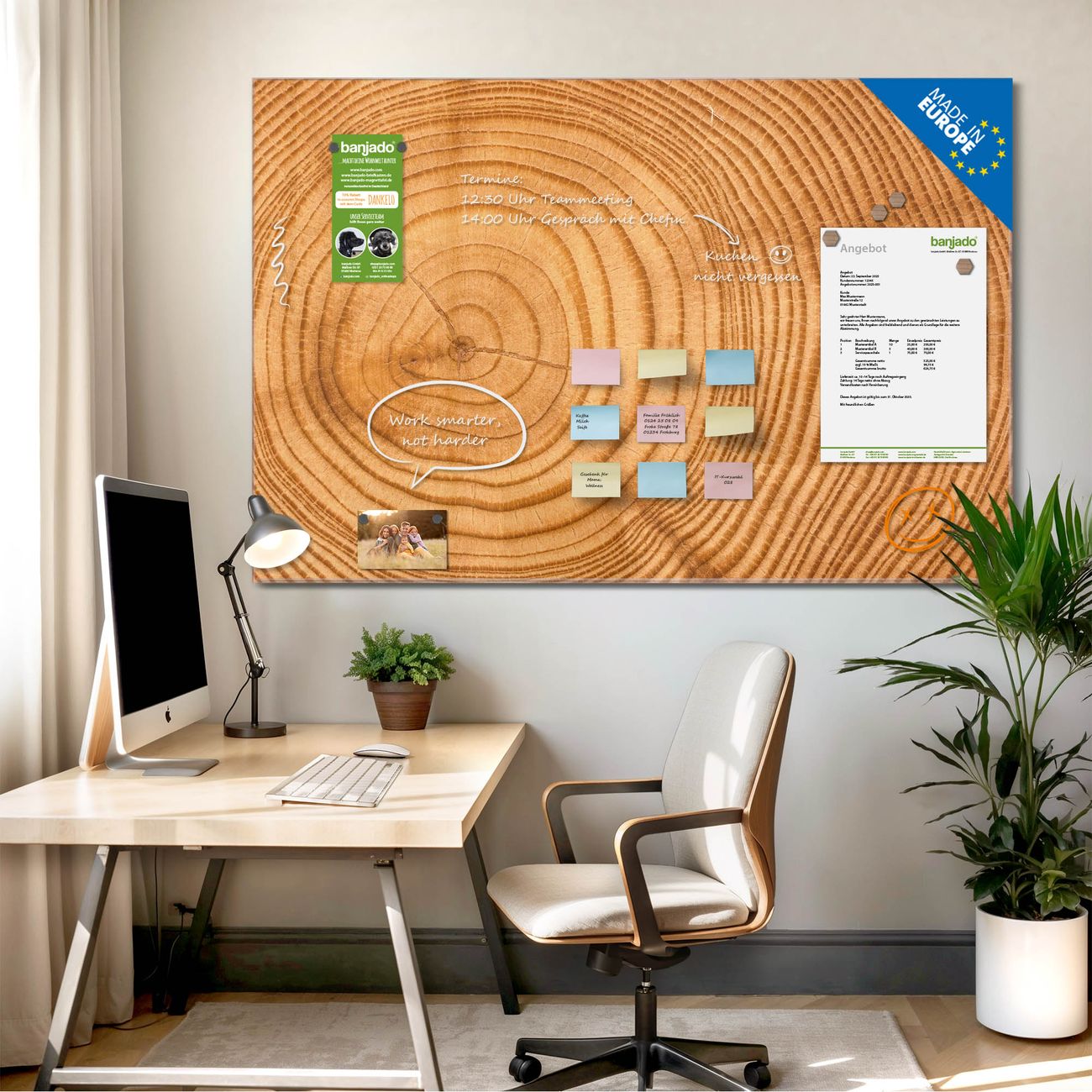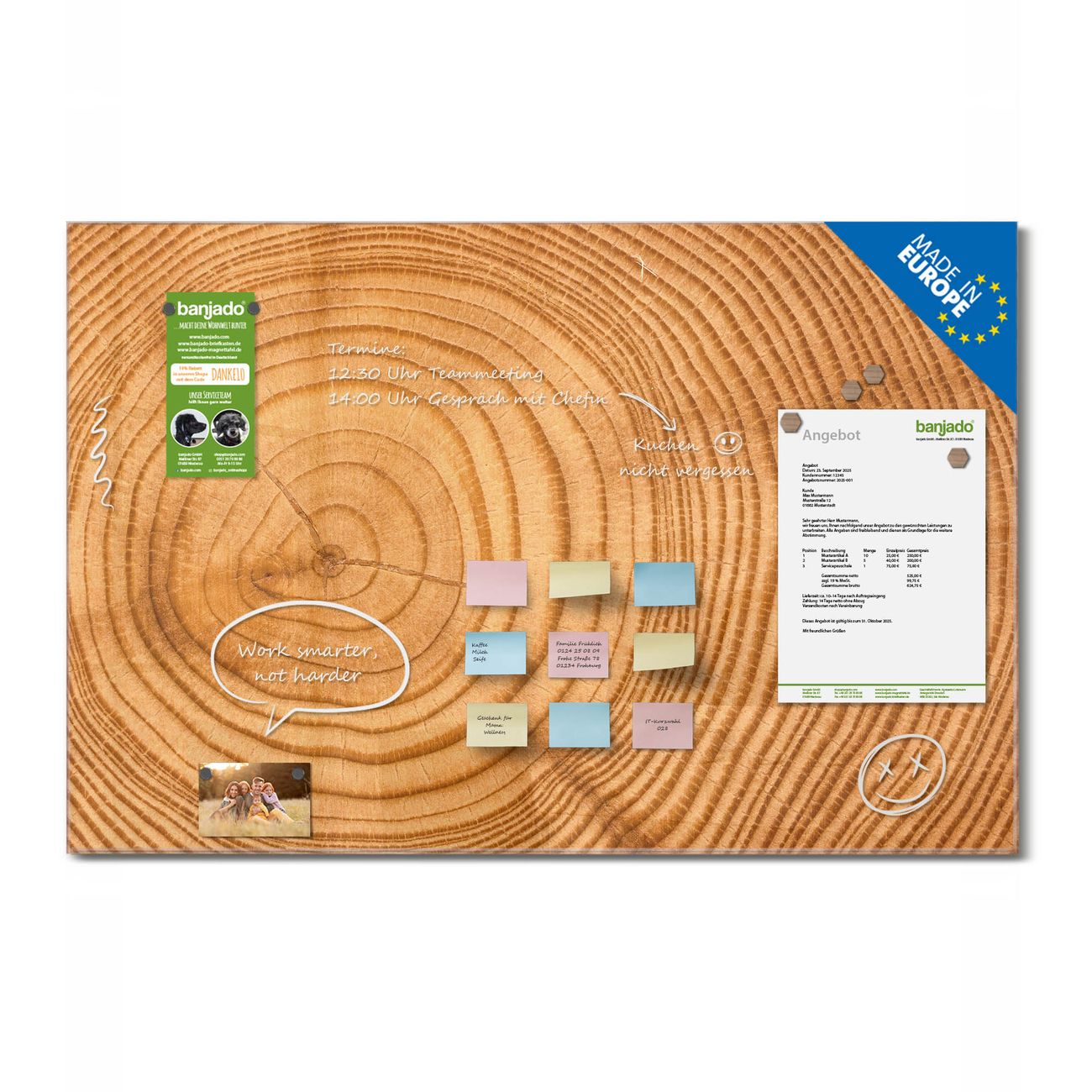Jede Glas Magnettafel wird in unserer Werkstatt von Hand gefertigt und sorgfältig geprüft. So erhalten Sie ein echtes Qualitätsprodukt, das Funktion und Ästhetik perfekt vereint.?? Warum banjado?