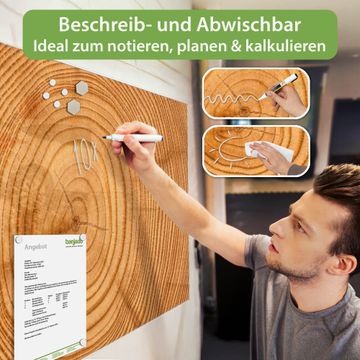 Die banjado Glas Magnettafel mit dem Motiv Motiv Baumstamm verbindet Funktionalität mit Stil. Sie ersetzt das Zettelchaos durch klare Strukturen und bringt dabei eine warme, natürliche Atmosphäre in Ihr Zuhause. Ob im Büro, in der Küche oder im Eingangsbereich - dieses Design-Board zieht Blicke an und sorgt für Ordnung mit Charakter.