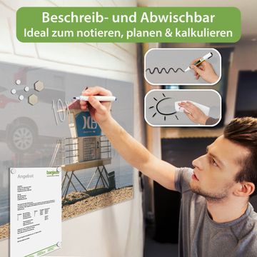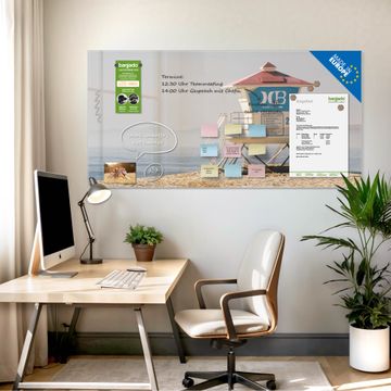 Die banjado Glas Magnettafel mit dem Motiv Motiv Beach Section verbindet Funktionalität mit Stil. Sie ersetzt das Zettelchaos durch klare Strukturen und bringt dabei eine warme, natürliche Atmosphäre in Ihr Zuhause. Ob im Büro, in der Küche oder im Eingangsbereich - dieses Design-Board zieht Blicke an und sorgt für Ordnung mit Charakter.