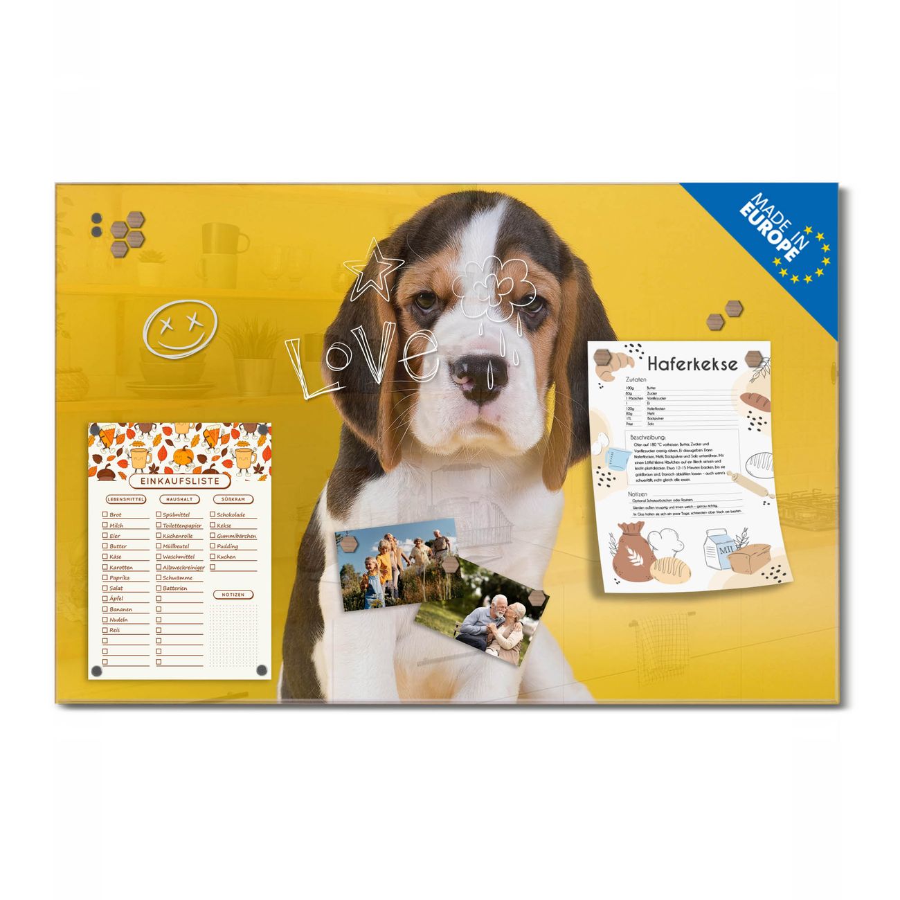 Ein Stück Design, das Ihren Alltag organisiert. Schreiben, heften, inspirieren - alles an einem Ort. Qualität, die man spürt. Montage leicht gemacht. Handwerk mit Herz - veredelt in Sachsen. Einzigartiges Design mit Motiv Motiv Beagle Beschreibbare Glasoberfläche, leicht zu reinigen Starke Magnetkraft durch Stahlrückwand Inklusive 4 Neodym-Magneten Flexible Montageoptionen Handveredelt in Sachsen - Qualität, die bleibt