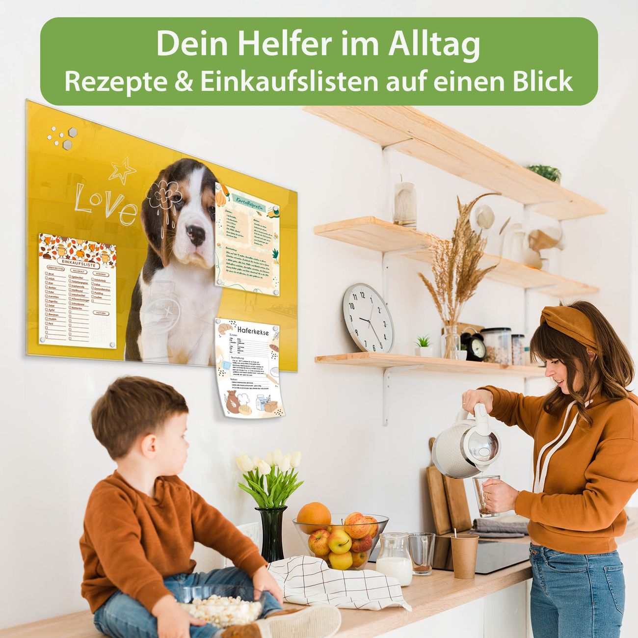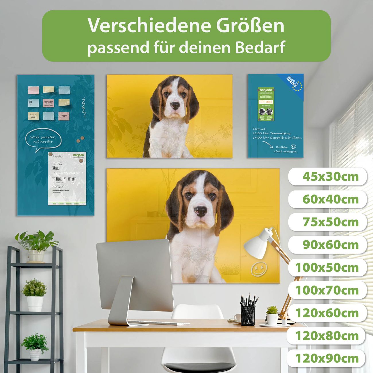 Die banjado Glas Magnettafel mit dem Motiv Motiv Beagle verbindet Funktionalität mit Stil. Sie ersetzt das Zettelchaos durch klare Strukturen und bringt dabei eine warme, natürliche Atmosphäre in Ihr Zuhause. Ob im Büro, in der Küche oder im Eingangsbereich - dieses Design-Board zieht Blicke an und sorgt für Ordnung mit Charakter.