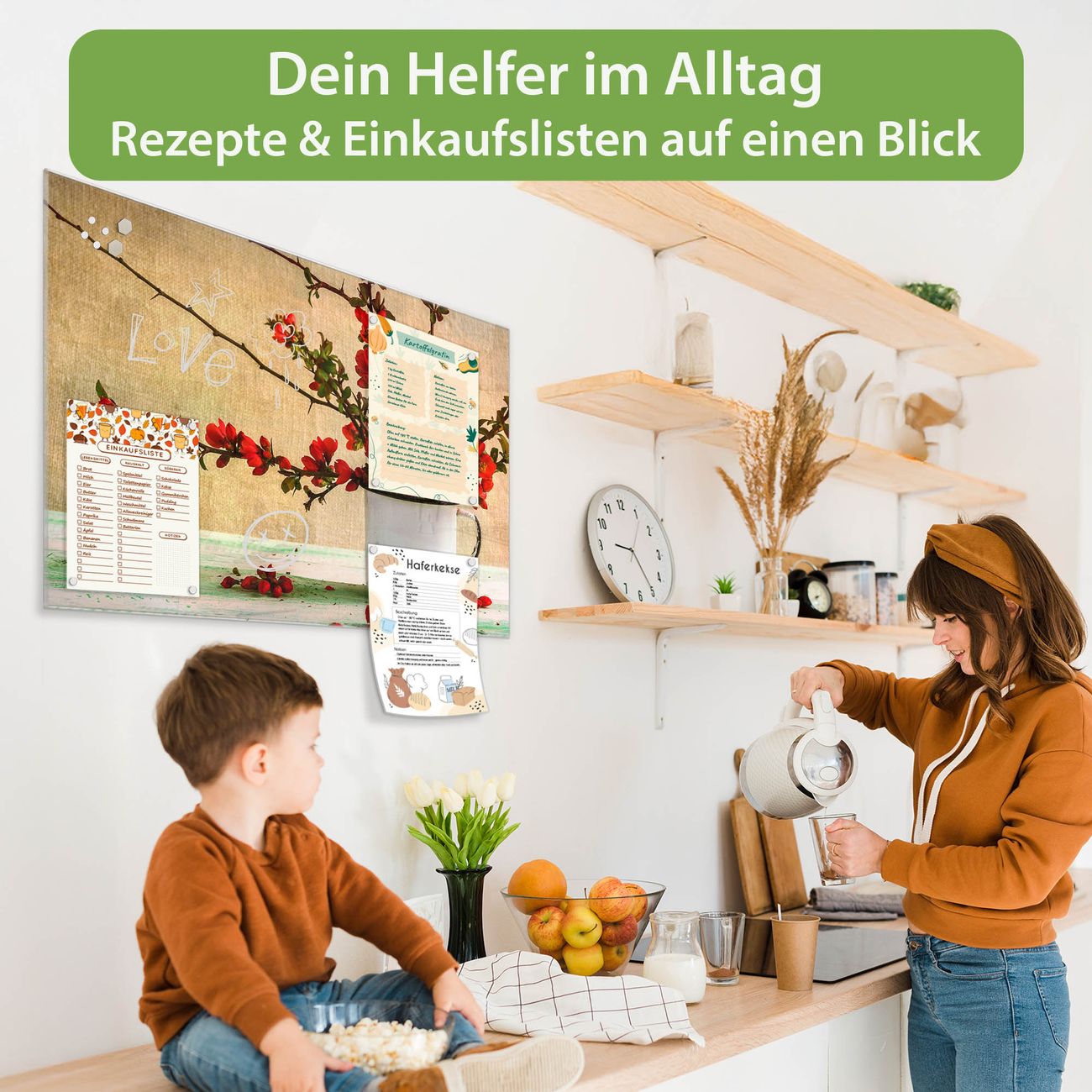 Auf der glatten Glasoberfläche lassen sich Termine, Rezepte oder Notizen ganz einfach mit Kreidestiften festhalten und rückstandslos entfernen. Starke Neodym-Magnete halten Ihre wichtigsten Erinnerungen sicher an Ort und Stelle. So entsteht Ihre ganz persönliche Ideenwand - jeden Tag neu.
