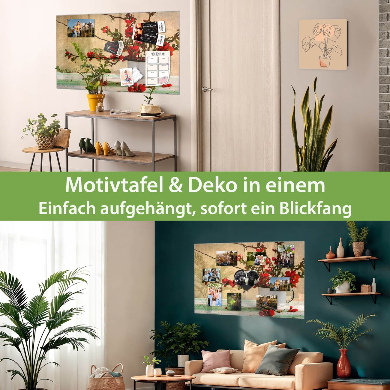 Dank der flachen Bauweise wirkt die Magnetwand fast schwebend an der Wand. Sie können sie mit Montagekleber elegant befestigen oder mit einem passenden Set klassisch verschrauben - beides sorgt für sicheren Halt und eine dezente Optik.