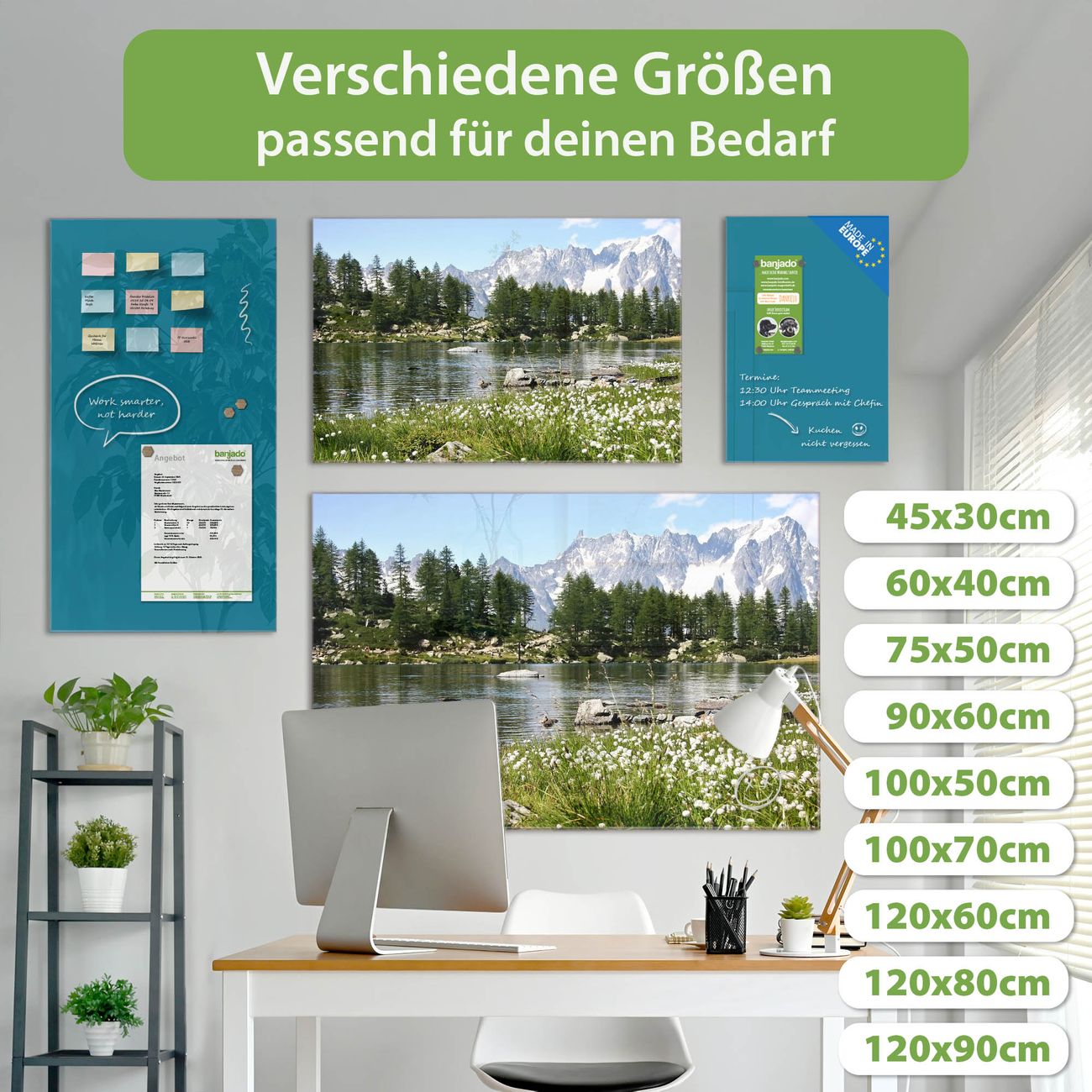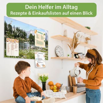Ein Stück Design, das Ihren Alltag organisiert. Schreiben, heften, inspirieren - alles an einem Ort. Qualität, die man spürt. Montage leicht gemacht. Handwerk mit Herz - veredelt in Sachsen. Einzigartiges Design mit Motiv Motiv Bergidylle Beschreibbare Glasoberfläche, leicht zu reinigen Starke Magnetkraft durch Stahlrückwand Inklusive 4 Neodym-Magneten Flexible Montageoptionen Handveredelt in Sachsen - Qualität, die bleibt