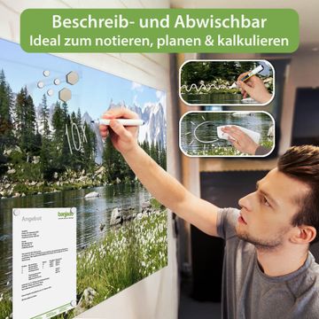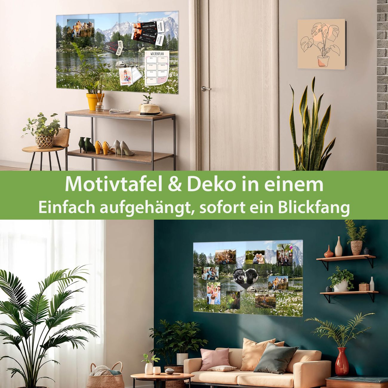 Die banjado Glas Magnettafel mit dem Motiv Motiv Bergidylle verbindet Funktionalität mit Stil. Sie ersetzt das Zettelchaos durch klare Strukturen und bringt dabei eine warme, natürliche Atmosphäre in Ihr Zuhause. Ob im Büro, in der Küche oder im Eingangsbereich - dieses Design-Board zieht Blicke an und sorgt für Ordnung mit Charakter.