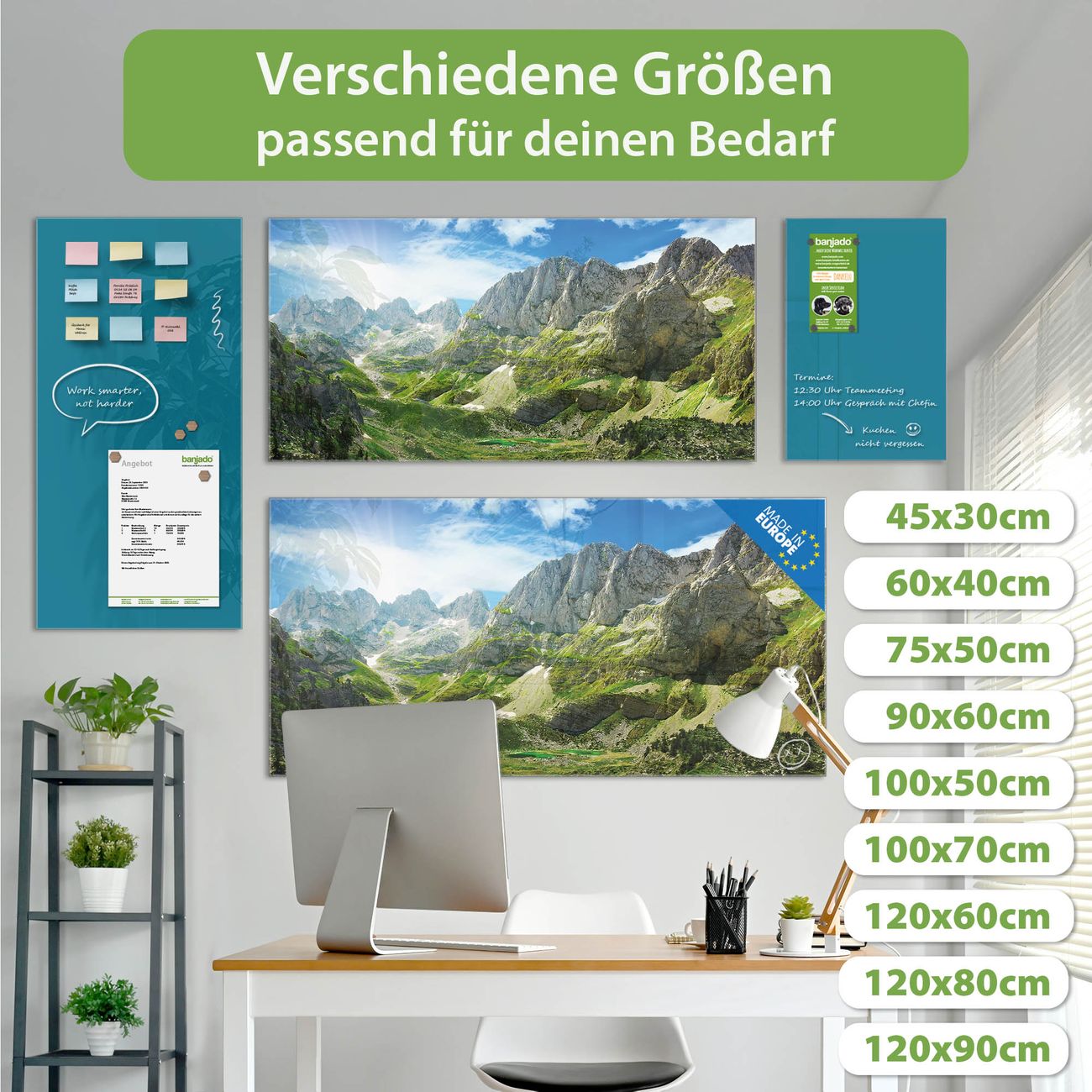 Ein Stück Design, das Ihren Alltag organisiert. Schreiben, heften, inspirieren - alles an einem Ort. Qualität, die man spürt. Montage leicht gemacht. Handwerk mit Herz - veredelt in Sachsen. Einzigartiges Design mit Motiv Motiv Bergsee Alpen Beschreibbare Glasoberfläche, leicht zu reinigen Starke Magnetkraft durch Stahlrückwand Inklusive 4 Neodym-Magneten Flexible Montageoptionen Handveredelt in Sachsen - Qualität, die bleibt