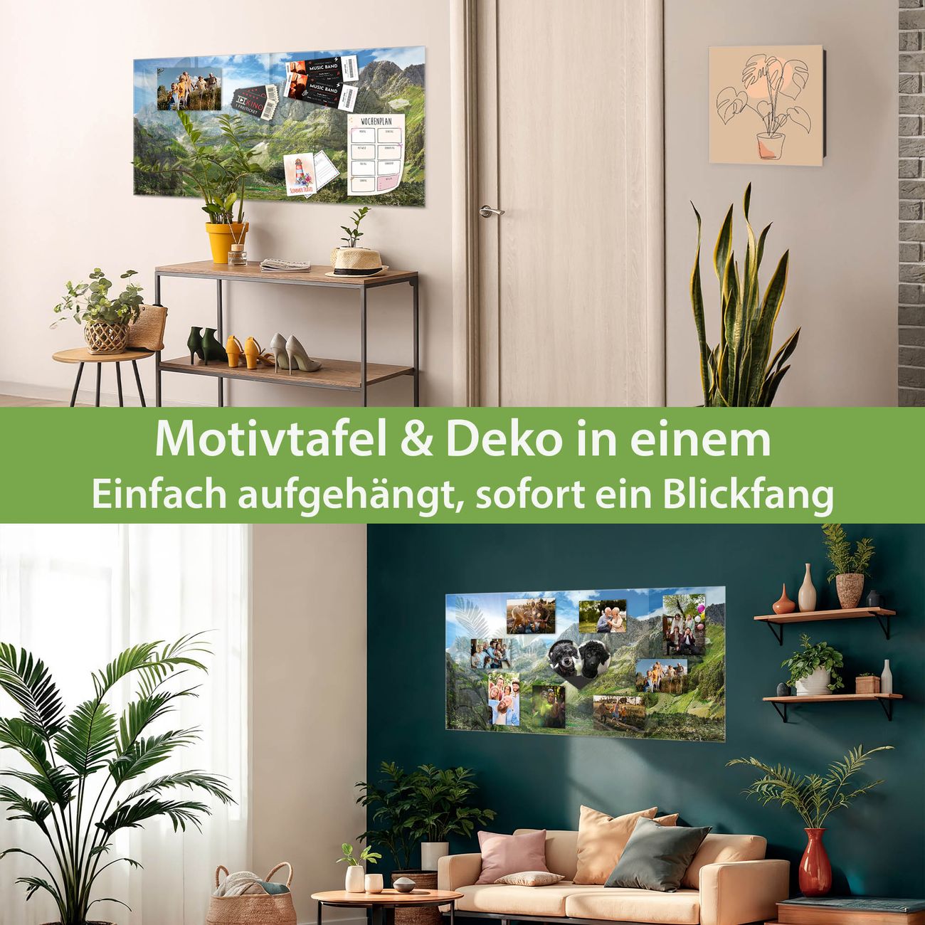 Dank der flachen Bauweise wirkt die Magnetwand fast schwebend an der Wand. Sie können sie mit Montagekleber elegant befestigen oder mit einem passenden Set klassisch verschrauben - beides sorgt für sicheren Halt und eine dezente Optik.