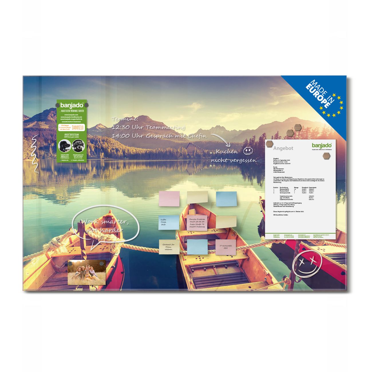Glas Magnettafel im Querformat Motiv Drei Boote Am Steg