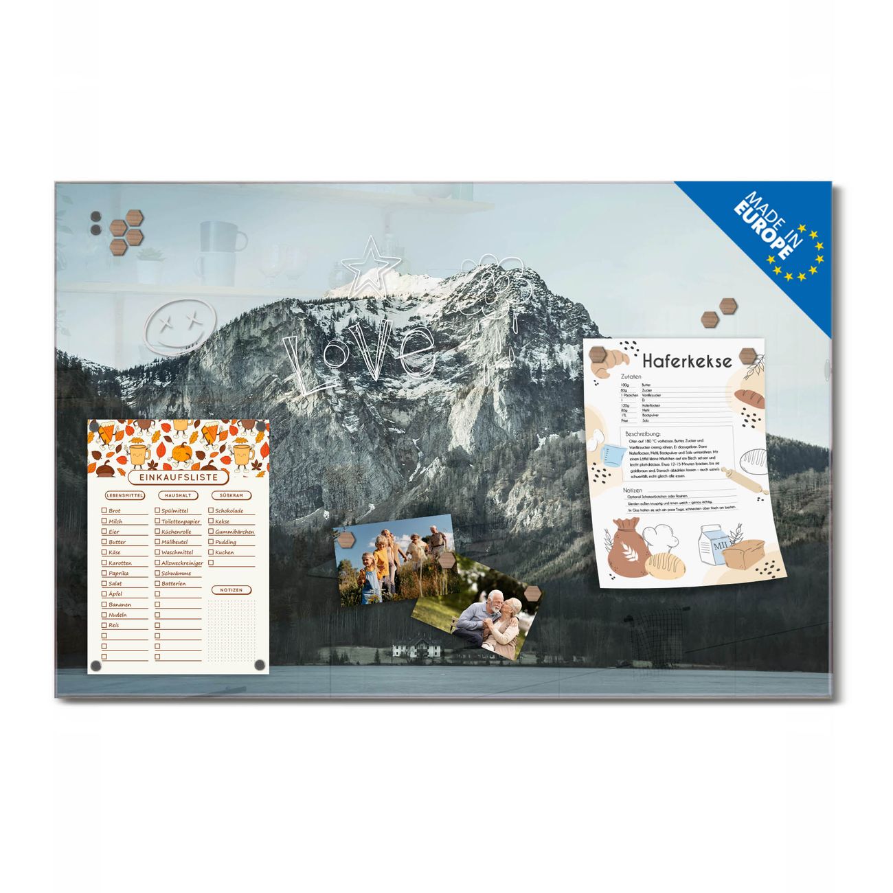 Ein Stück Design, das Ihren Alltag organisiert. Schreiben, heften, inspirieren - alles an einem Ort. Qualität, die man spürt. Montage leicht gemacht. Handwerk mit Herz - veredelt in Sachsen. Einzigartiges Design mit Motiv Motiv Im Schatten des Bergs Beschreibbare Glasoberfläche, leicht zu reinigen Starke Magnetkraft durch Stahlrückwand Inklusive 4 Neodym-Magneten Flexible Montageoptionen Handveredelt in Sachsen - Qualität, die bleibt