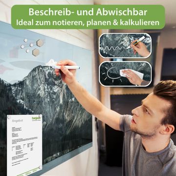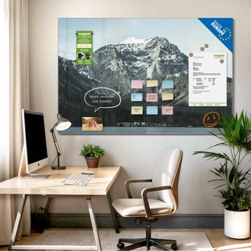 Die banjado Glas Magnettafel mit dem Motiv Motiv Im Schatten des Bergs verbindet Funktionalität mit Stil. Sie ersetzt das Zettelchaos durch klare Strukturen und bringt dabei eine warme, natürliche Atmosphäre in Ihr Zuhause. Ob im Büro, in der Küche oder im Eingangsbereich - dieses Design-Board zieht Blicke an und sorgt für Ordnung mit Charakter.