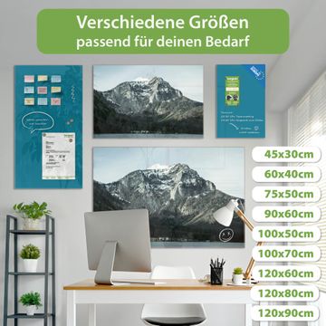 Auf der glatten Glasoberfläche lassen sich Termine, Rezepte oder Notizen ganz einfach mit Kreidestiften festhalten und rückstandslos entfernen. Starke Neodym-Magnete halten Ihre wichtigsten Erinnerungen sicher an Ort und Stelle. So entsteht Ihre ganz persönliche Ideenwand - jeden Tag neu.
