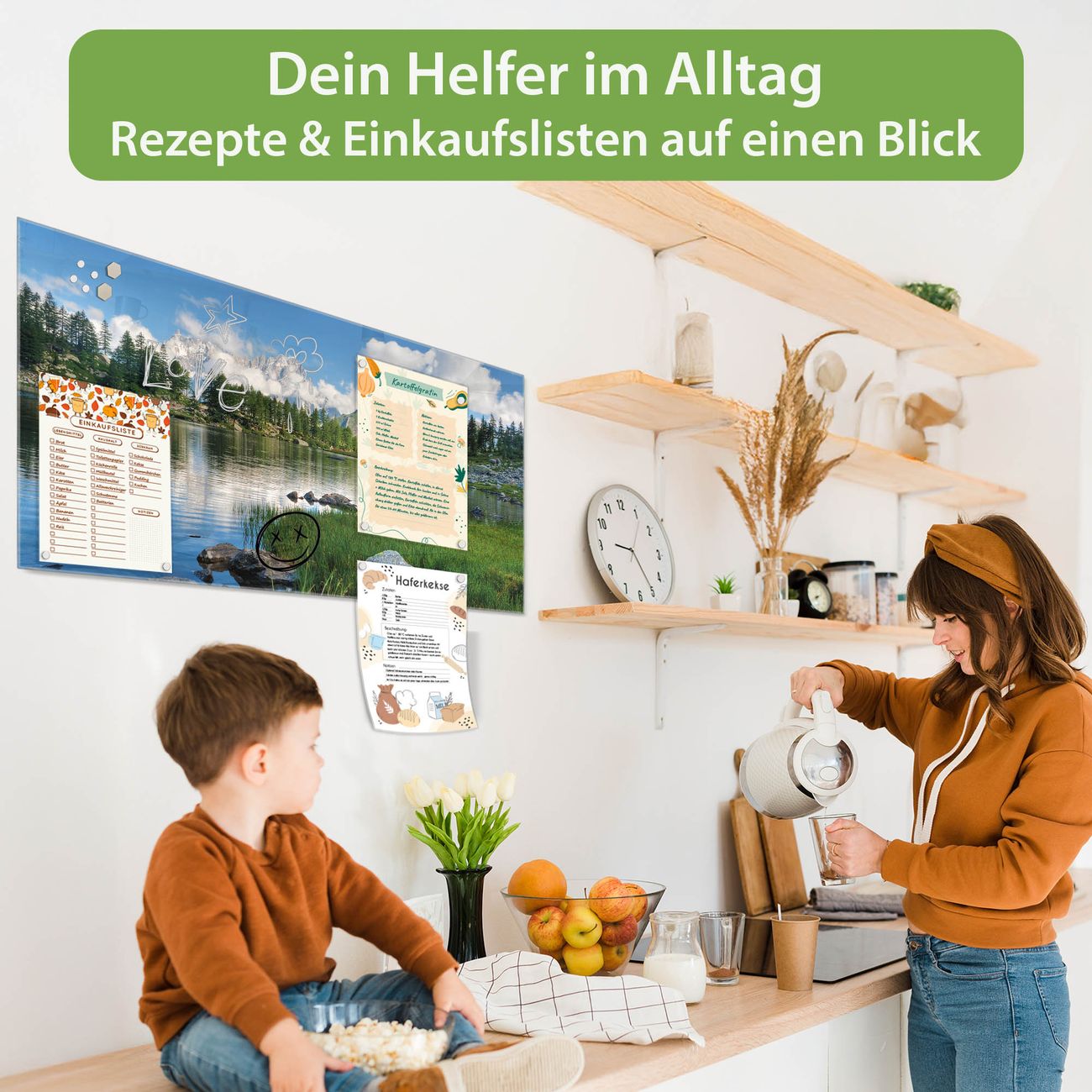 Ein Stück Design, das Ihren Alltag organisiert. Schreiben, heften, inspirieren - alles an einem Ort. Qualität, die man spürt. Montage leicht gemacht. Handwerk mit Herz - veredelt in Sachsen. Einzigartiges Design mit Motiv Motiv Gebirgssee Beschreibbare Glasoberfläche, leicht zu reinigen Starke Magnetkraft durch Stahlrückwand Inklusive 4 Neodym-Magneten Flexible Montageoptionen Handveredelt in Sachsen - Qualität, die bleibt
