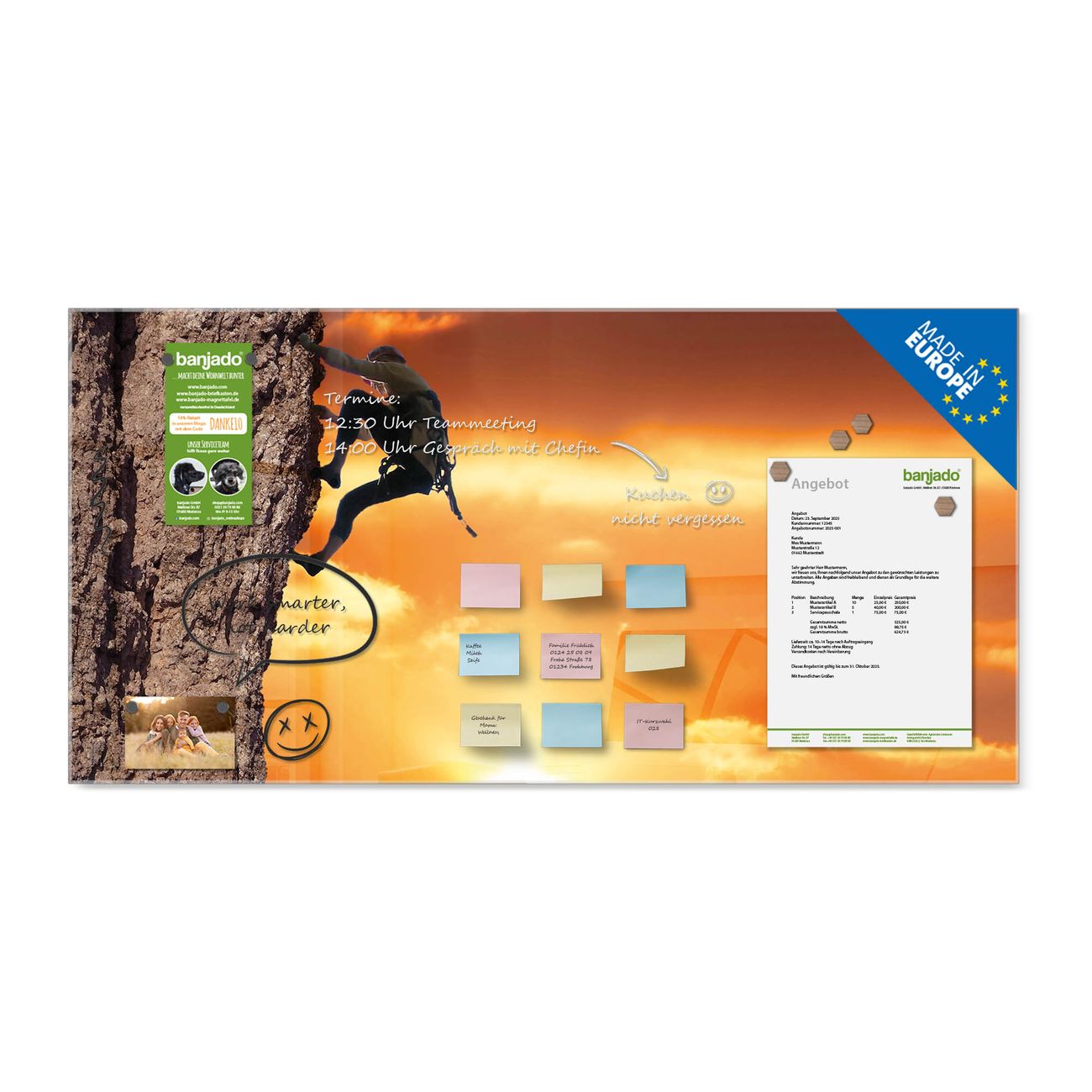 Die banjado Glas Magnettafel mit dem Motiv Motiv Bergsteiger verbindet Funktionalität mit Stil. Sie ersetzt das Zettelchaos durch klare Strukturen und bringt dabei eine warme, natürliche Atmosphäre in Ihr Zuhause. Ob im Büro, in der Küche oder im Eingangsbereich - dieses Design-Board zieht Blicke an und sorgt für Ordnung mit Charakter.