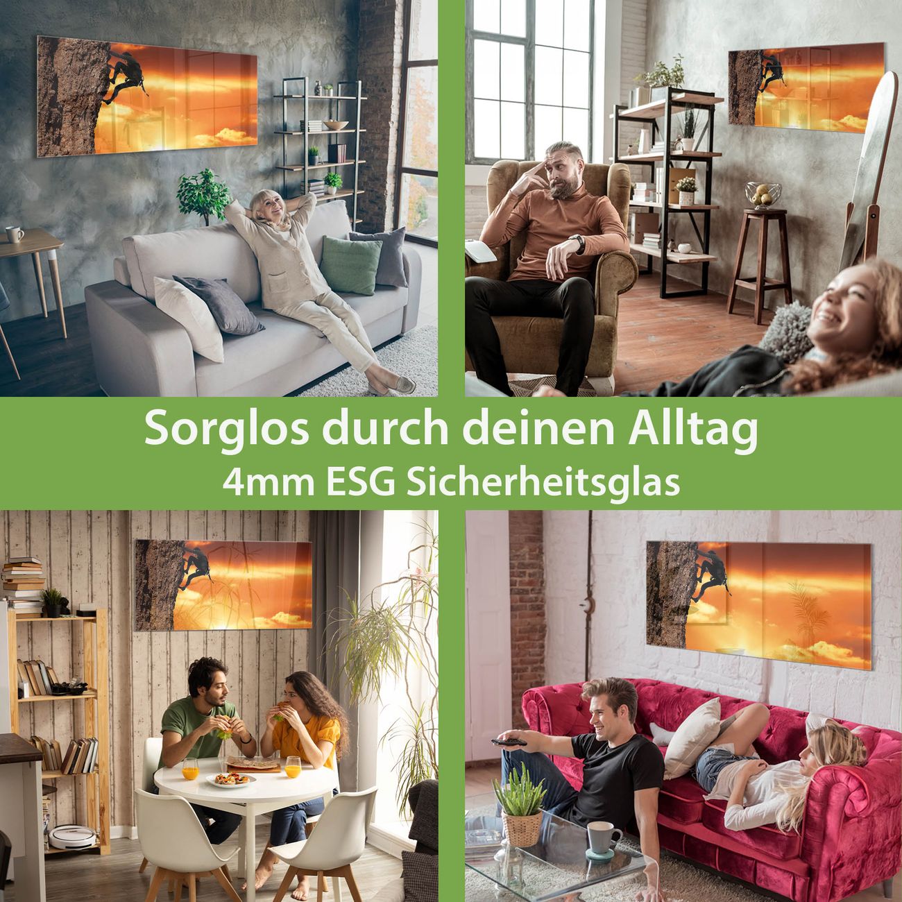 - Material: 4mm Sicherheitsglas mit Metallrückwand