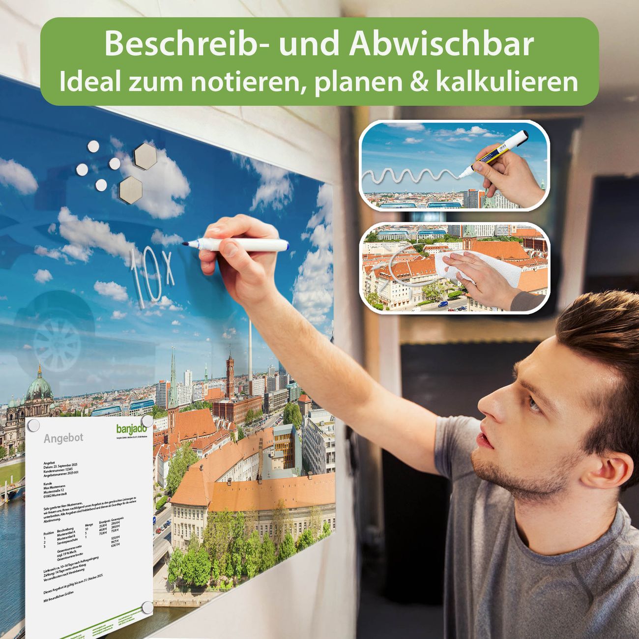 Die banjado Glas Magnettafel mit dem Motiv Motiv Berlin Mitte verbindet Funktionalität mit Stil. Sie ersetzt das Zettelchaos durch klare Strukturen und bringt dabei eine warme, natürliche Atmosphäre in Ihr Zuhause. Ob im Büro, in der Küche oder im Eingangsbereich - dieses Design-Board zieht Blicke an und sorgt für Ordnung mit Charakter.