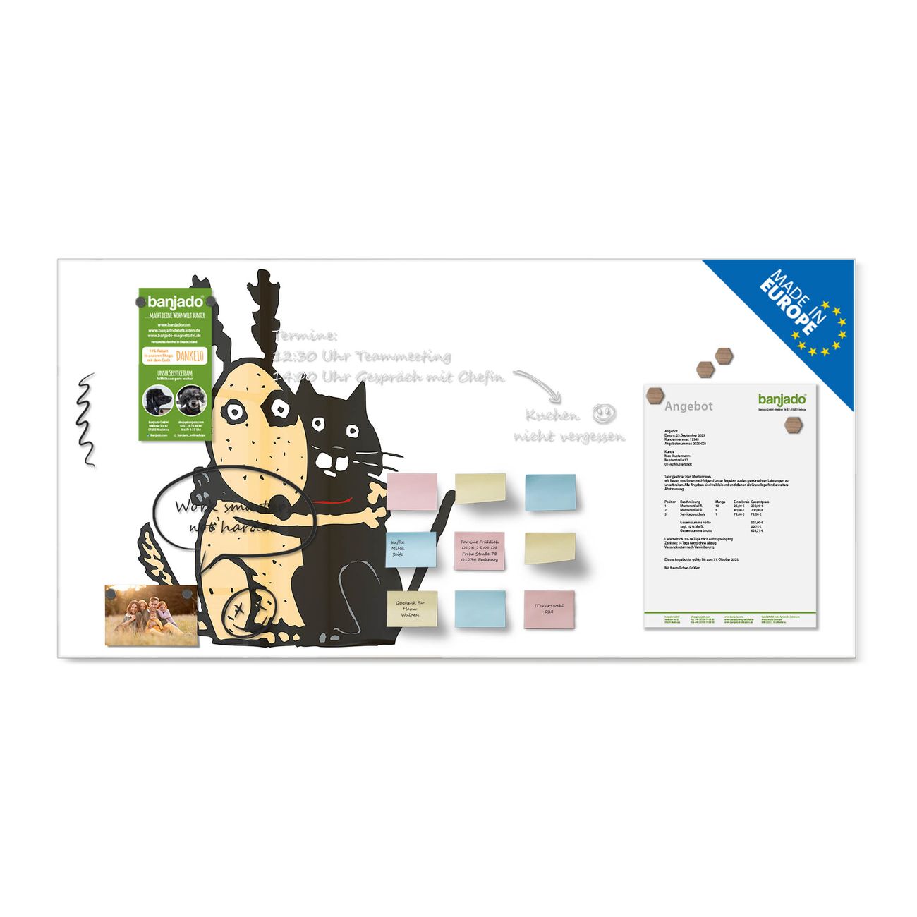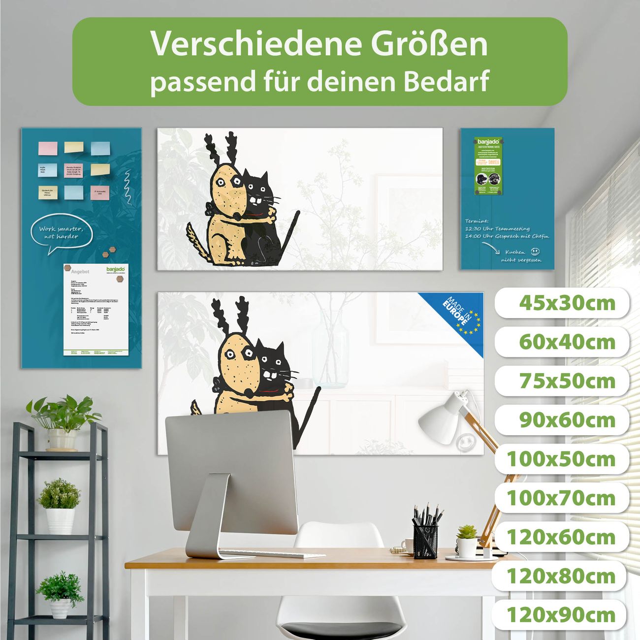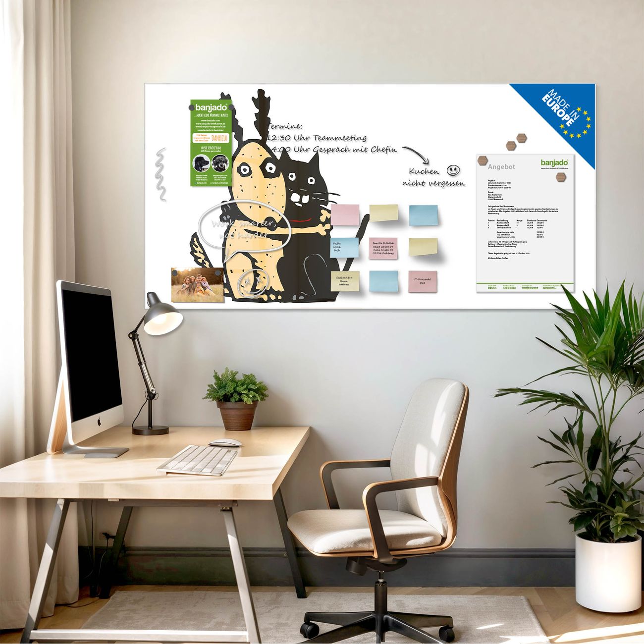 Jede Glas Magnettafel wird in unserer Werkstatt von Hand gefertigt und sorgfältig geprüft. So erhalten Sie ein echtes Qualitätsprodukt, das Funktion und Ästhetik perfekt vereint.?? Warum banjado?