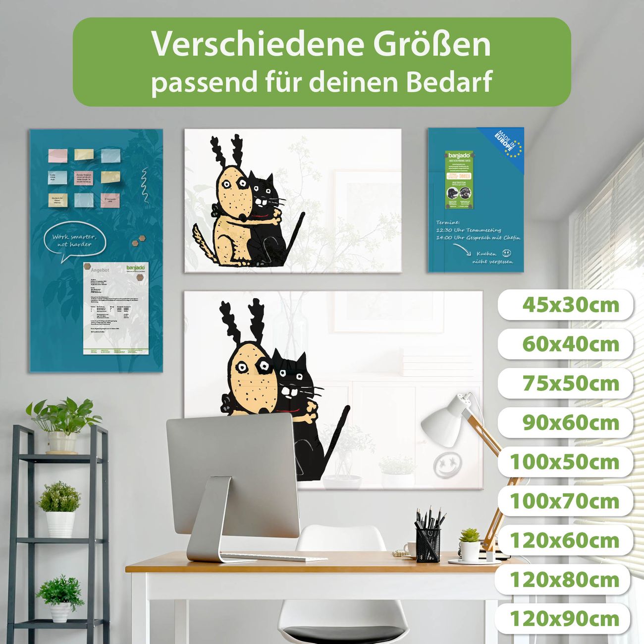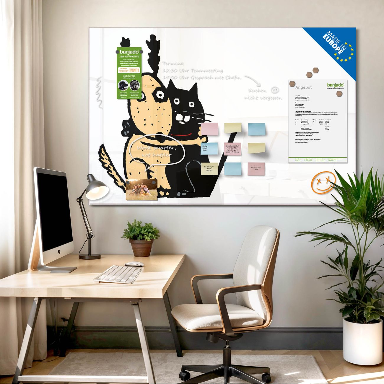 Jede Glas Magnettafel wird in unserer Werkstatt von Hand gefertigt und sorgfältig geprüft. So erhalten Sie ein echtes Qualitätsprodukt, das Funktion und Ästhetik perfekt vereint.?? Warum banjado?