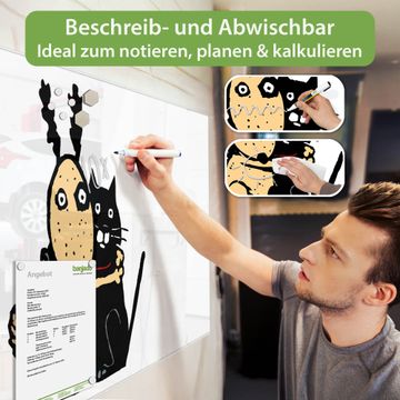 Auf der glatten Glasoberfläche lassen sich Termine, Rezepte oder Notizen ganz einfach mit Kreidestiften festhalten und rückstandslos entfernen. Starke Neodym-Magnete halten Ihre wichtigsten Erinnerungen sicher an Ort und Stelle. So entsteht Ihre ganz persönliche Ideenwand - jeden Tag neu.