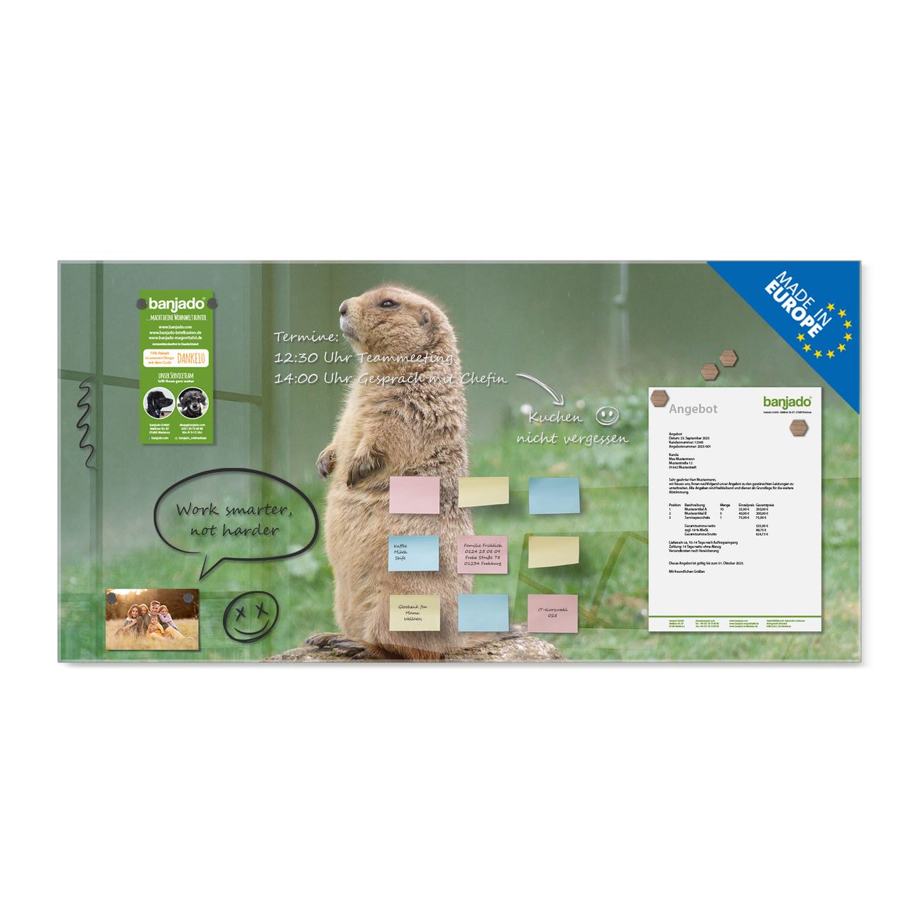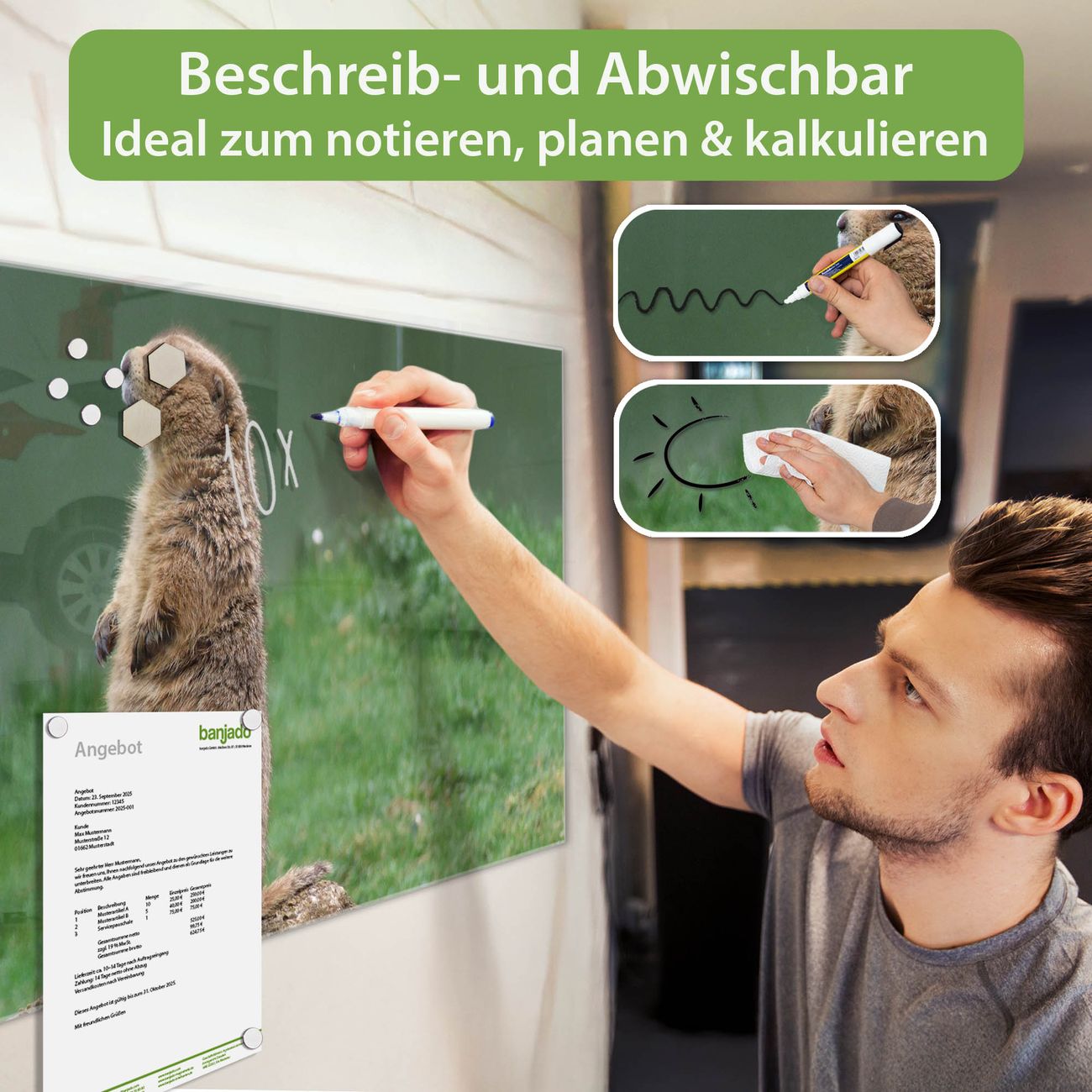 Die banjado Glas Magnettafel mit dem Motiv Motiv Biber verbindet Funktionalität mit Stil. Sie ersetzt das Zettelchaos durch klare Strukturen und bringt dabei eine warme, natürliche Atmosphäre in Ihr Zuhause. Ob im Büro, in der Küche oder im Eingangsbereich - dieses Design-Board zieht Blicke an und sorgt für Ordnung mit Charakter.