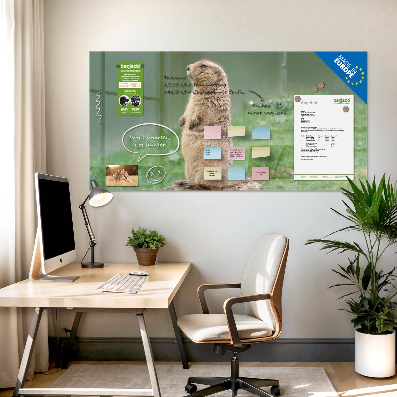 Jede Glas Magnettafel wird in unserer Werkstatt von Hand gefertigt und sorgfältig geprüft. So erhalten Sie ein echtes Qualitätsprodukt, das Funktion und Ästhetik perfekt vereint.?? Warum banjado?