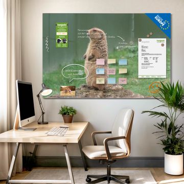 Die banjado Glas Magnettafel mit dem Motiv Motiv Biber verbindet Funktionalität mit Stil. Sie ersetzt das Zettelchaos durch klare Strukturen und bringt dabei eine warme, natürliche Atmosphäre in Ihr Zuhause. Ob im Büro, in der Küche oder im Eingangsbereich - dieses Design-Board zieht Blicke an und sorgt für Ordnung mit Charakter.