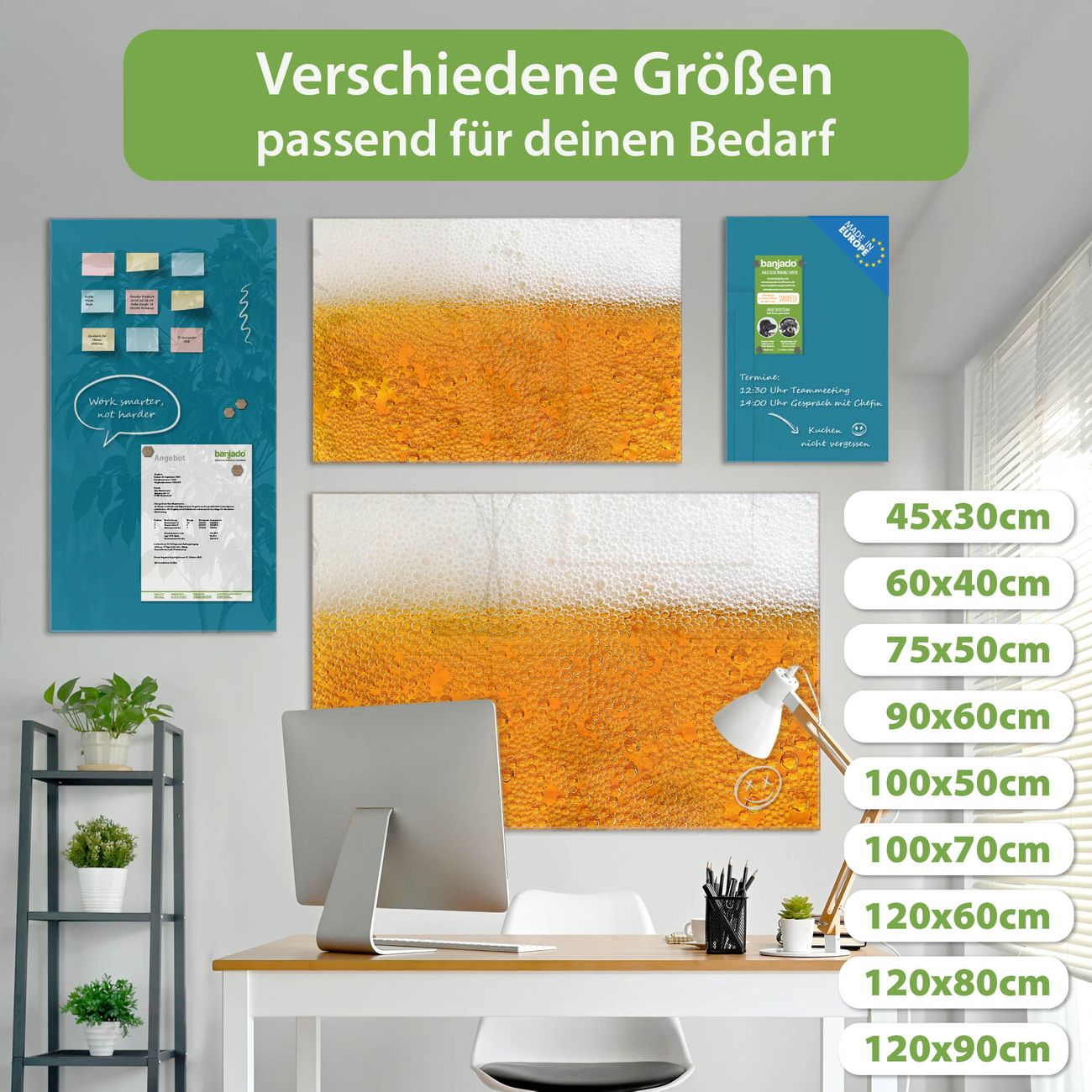 Jede Glas Magnettafel wird in unserer Werkstatt von Hand gefertigt und sorgfältig geprüft. So erhalten Sie ein echtes Qualitätsprodukt, das Funktion und Ästhetik perfekt vereint.?? Warum banjado?