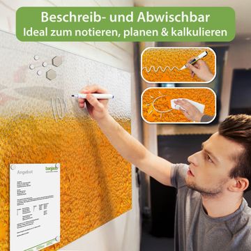 Auf der glatten Glasoberfläche lassen sich Termine, Rezepte oder Notizen ganz einfach mit Kreidestiften festhalten und rückstandslos entfernen. Starke Neodym-Magnete halten Ihre wichtigsten Erinnerungen sicher an Ort und Stelle. So entsteht Ihre ganz persönliche Ideenwand - jeden Tag neu.
