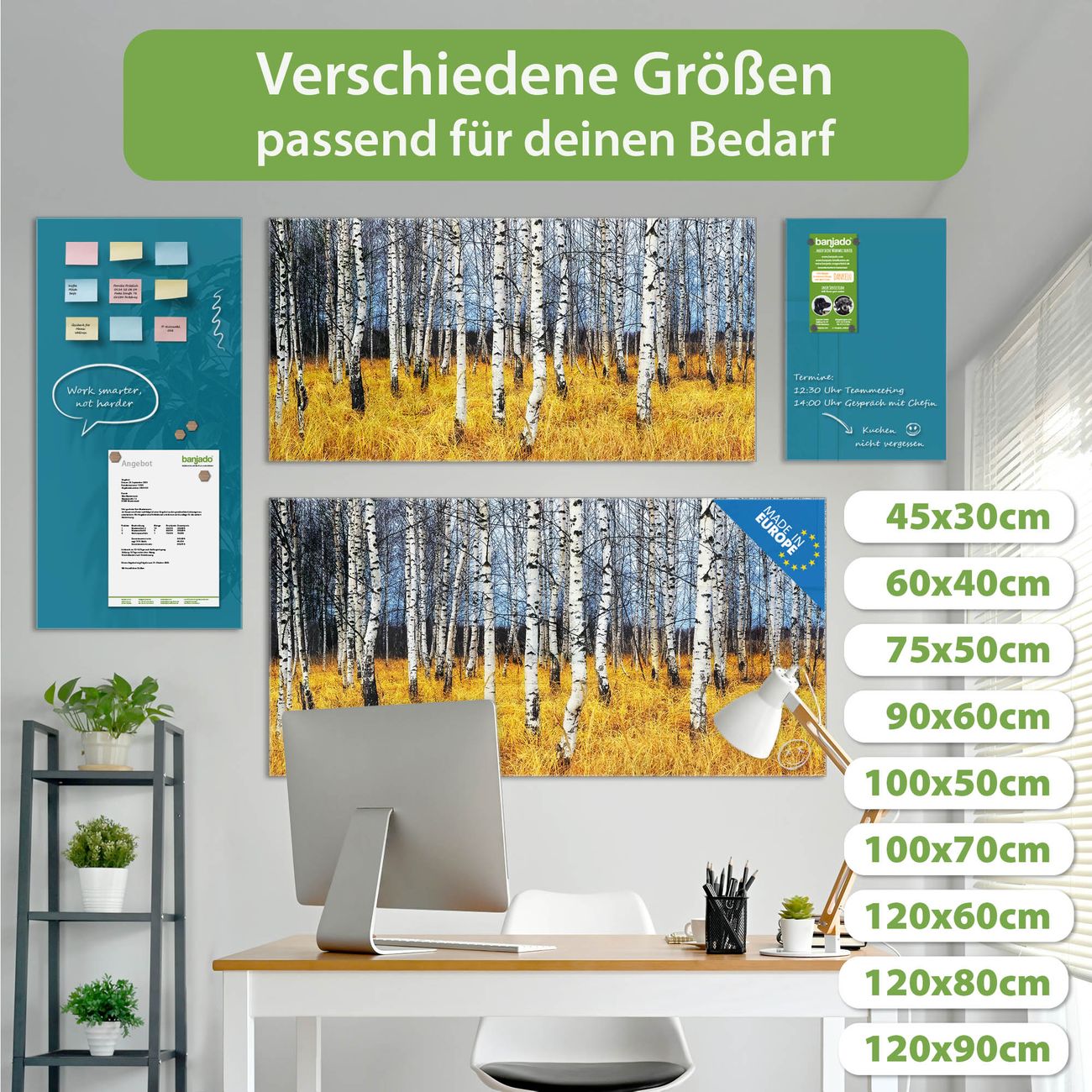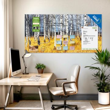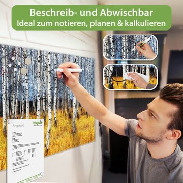 Die banjado Glas Magnettafel mit dem Motiv Motiv Birkenhain verbindet Funktionalität mit Stil. Sie ersetzt das Zettelchaos durch klare Strukturen und bringt dabei eine warme, natürliche Atmosphäre in Ihr Zuhause. Ob im Büro, in der Küche oder im Eingangsbereich - dieses Design-Board zieht Blicke an und sorgt für Ordnung mit Charakter.