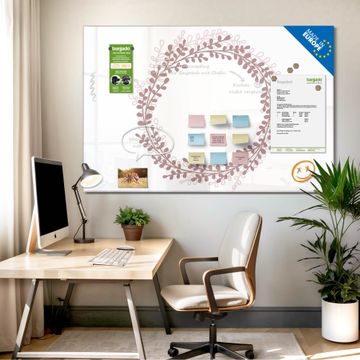 Glas Magnettafel im Querformat Motiv Blätterkranz