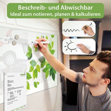 Gefertigt aus gehärtetem Sicherheitsglas mit einer magnetischen Rückwand aus Stahl überzeugt diese Magnettafel durch Stabilität und Langlebigkeit. Die Oberfläche bleibt dauerhaft brillant und pflegeleicht, selbst bei täglicher Nutzung.