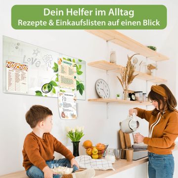 Auf der glatten Glasoberfläche lassen sich Termine, Rezepte oder Notizen ganz einfach mit Kreidestiften festhalten und rückstandslos entfernen. Starke Neodym-Magnete halten Ihre wichtigsten Erinnerungen sicher an Ort und Stelle. So entsteht Ihre ganz persönliche Ideenwand - jeden Tag neu.