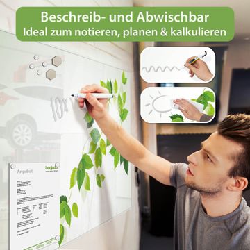 Gefertigt aus gehärtetem Sicherheitsglas mit einer magnetischen Rückwand aus Stahl überzeugt diese Magnettafel durch Stabilität und Langlebigkeit. Die Oberfläche bleibt dauerhaft brillant und pflegeleicht, selbst bei täglicher Nutzung.