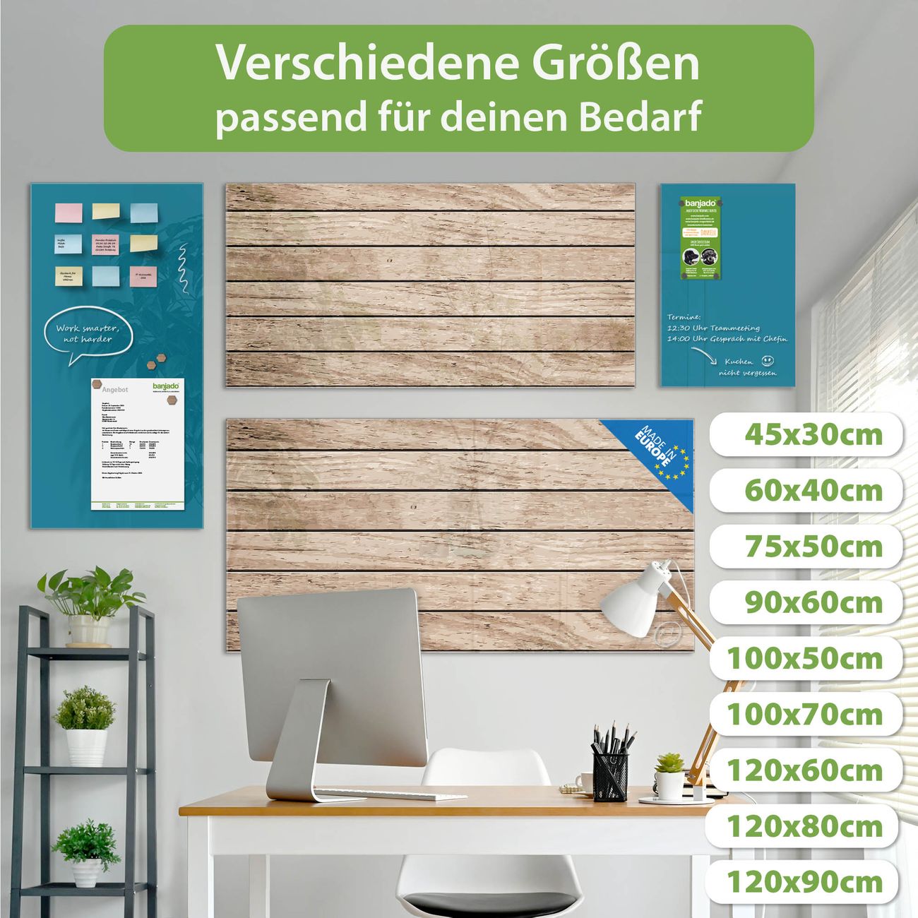 Ein Stück Design, das Ihren Alltag organisiert. Schreiben, heften, inspirieren - alles an einem Ort. Qualität, die man spürt. Montage leicht gemacht. Handwerk mit Herz - veredelt in Sachsen. Einzigartiges Design mit Motiv Motiv Blasse Holzlatten Beschreibbare Glasoberfläche, leicht zu reinigen Starke Magnetkraft durch Stahlrückwand Inklusive 4 Neodym-Magneten Flexible Montageoptionen Handveredelt in Sachsen - Qualität, die bleibt