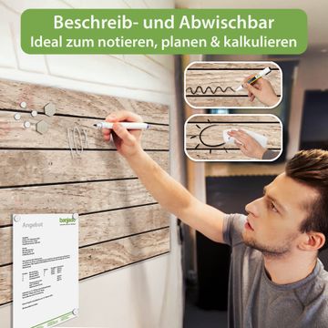 Die banjado Glas Magnettafel mit dem Motiv Motiv Blasse Holzlatten verbindet Funktionalität mit Stil. Sie ersetzt das Zettelchaos durch klare Strukturen und bringt dabei eine warme, natürliche Atmosphäre in Ihr Zuhause. Ob im Büro, in der Küche oder im Eingangsbereich - dieses Design-Board zieht Blicke an und sorgt für Ordnung mit Charakter.
