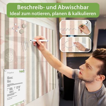 Die banjado Glas Magnettafel mit dem Motiv Motiv Blasse Streifen verbindet Funktionalität mit Stil. Sie ersetzt das Zettelchaos durch klare Strukturen und bringt dabei eine warme, natürliche Atmosphäre in Ihr Zuhause. Ob im Büro, in der Küche oder im Eingangsbereich - dieses Design-Board zieht Blicke an und sorgt für Ordnung mit Charakter.
