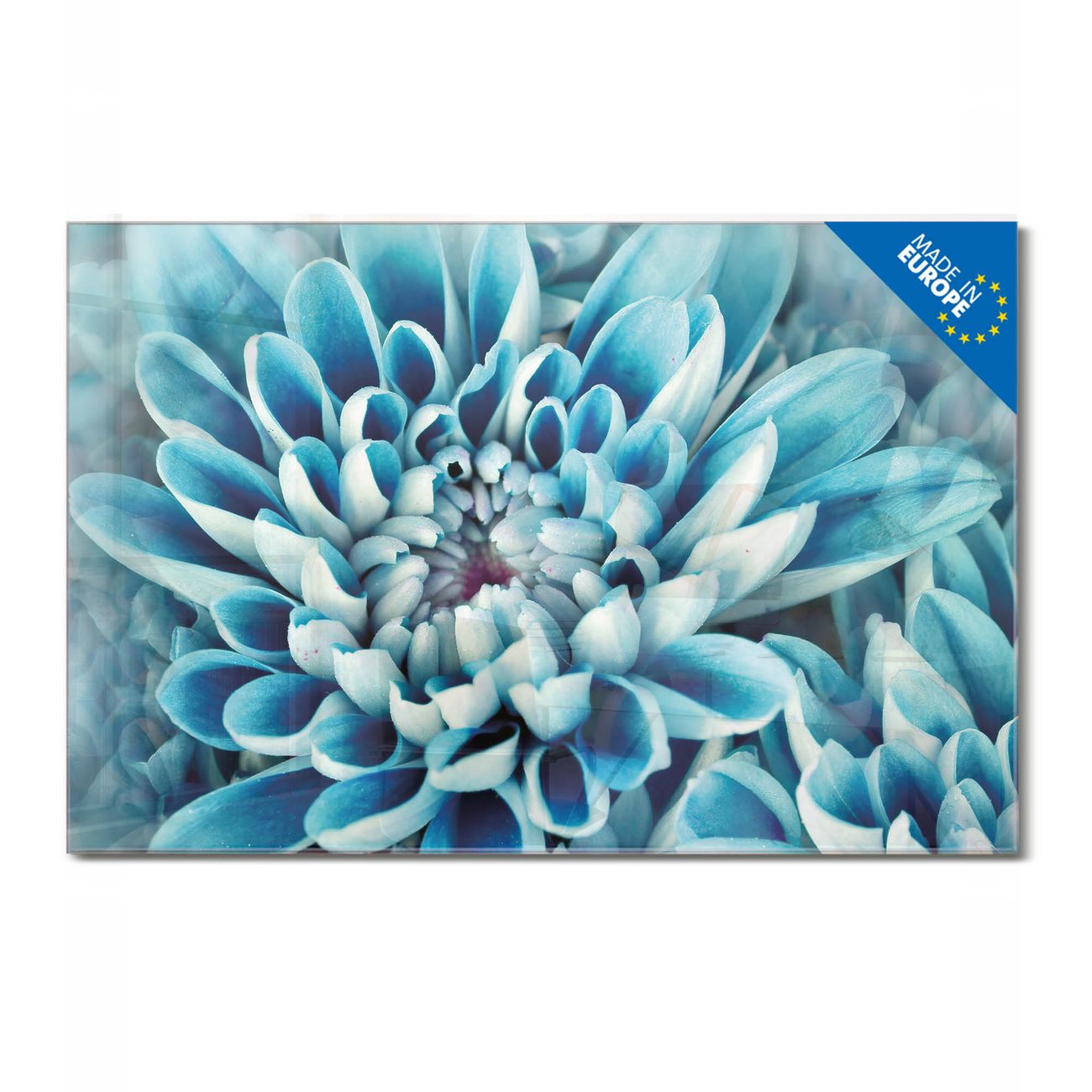 Glas Magnettafel im Querformat Motiv Blaue Blüten