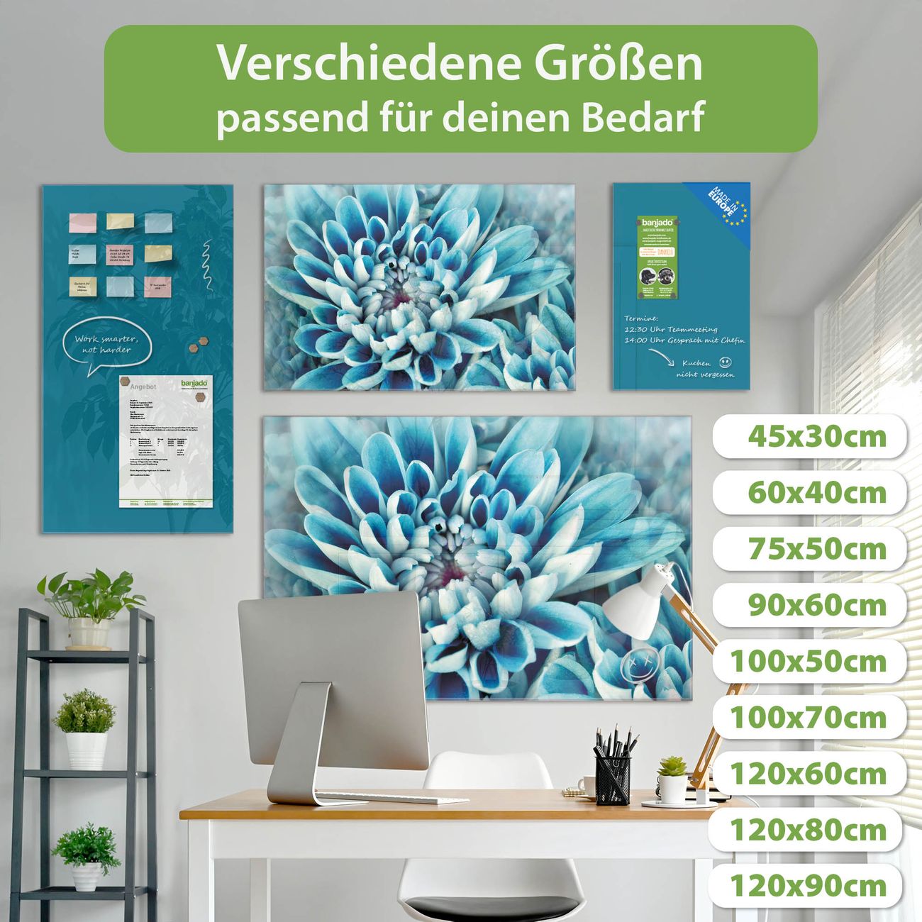 Jede Glas Magnettafel wird in unserer Werkstatt von Hand gefertigt und sorgfältig geprüft. So erhalten Sie ein echtes Qualitätsprodukt, das Funktion und Ästhetik perfekt vereint.?? Warum banjado?
