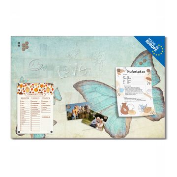 Glas Magnettafel im Querformat Motiv Blaue Schmetterlinge